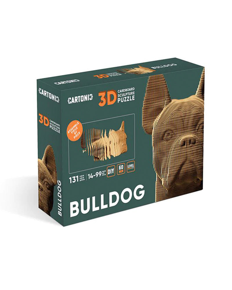 Introducing Cartonic 3D Puzzles: Your eco-friendly path to crafting genuine cardboard art! Each kit features pre-cut cardboard slices for effortless assemblyâ€â€just like magic! Dive into the creation of Bulldog, witnessing its formation layer by layer. Once complete, customize your masterpiece with paint or leave it as is for unique home décor. Beware: the addictive process may leave you craving more!